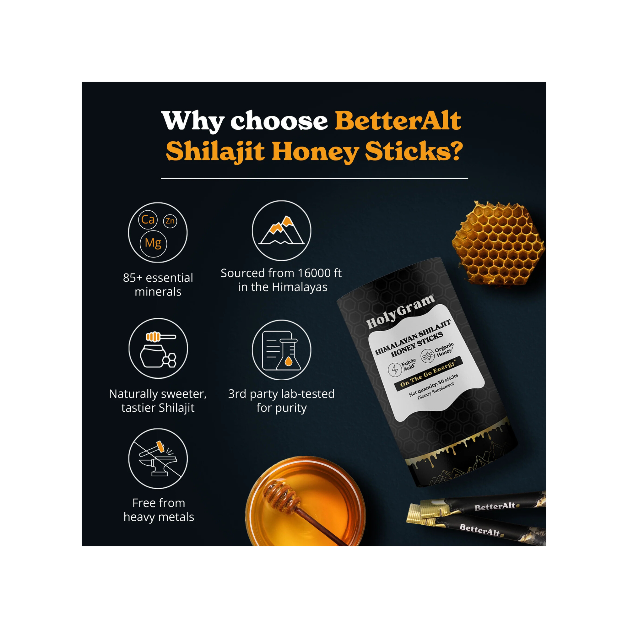 We extract, purify and filter Shilajit found in the Himalayas using Ayurvedic methods to develop Resin and combine it with 100% pure raw honey to make these sticks.
